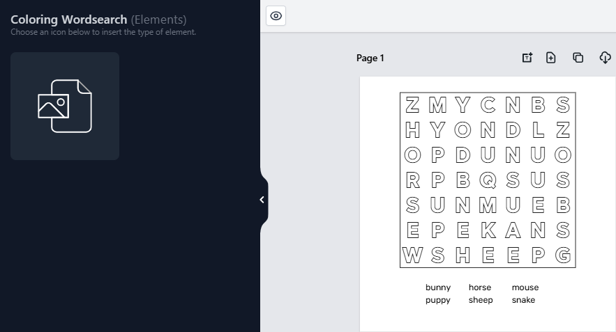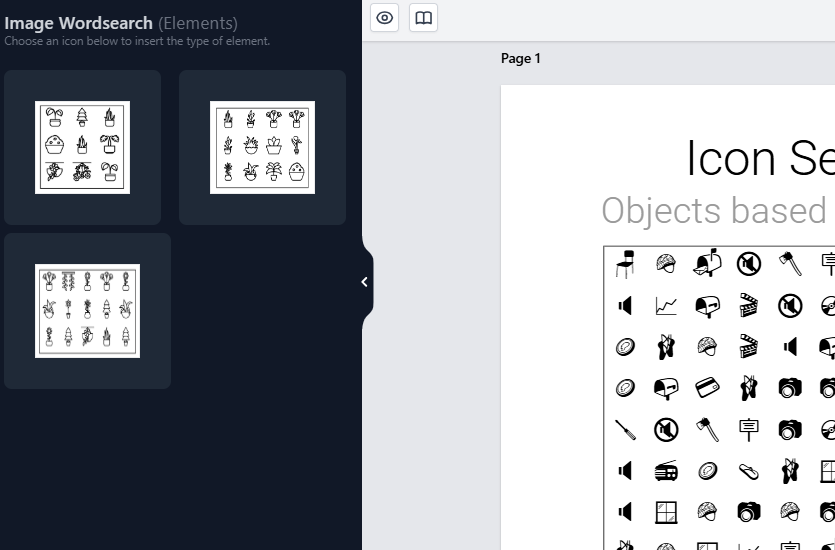 Make word search puzzles that use pictures as clues. Upload your images, add words, and set the difficulty. Perfect for educational books, themed puzzles, or creative activity pages.