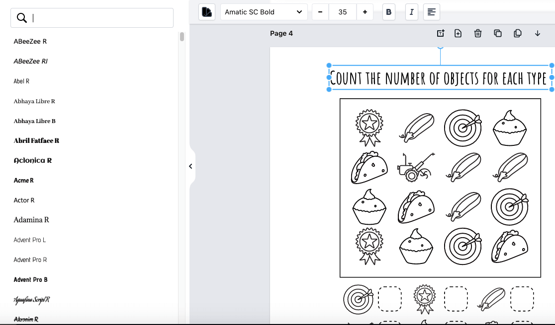 Create counting worksheets with pictures, numbers, or themed objects. Adjust the range and difficulty. Perfect for preschool and early learning books.