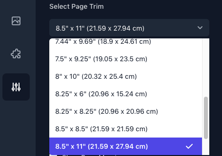 Choose any Amazon KDP-approved trim size directly inside the app.