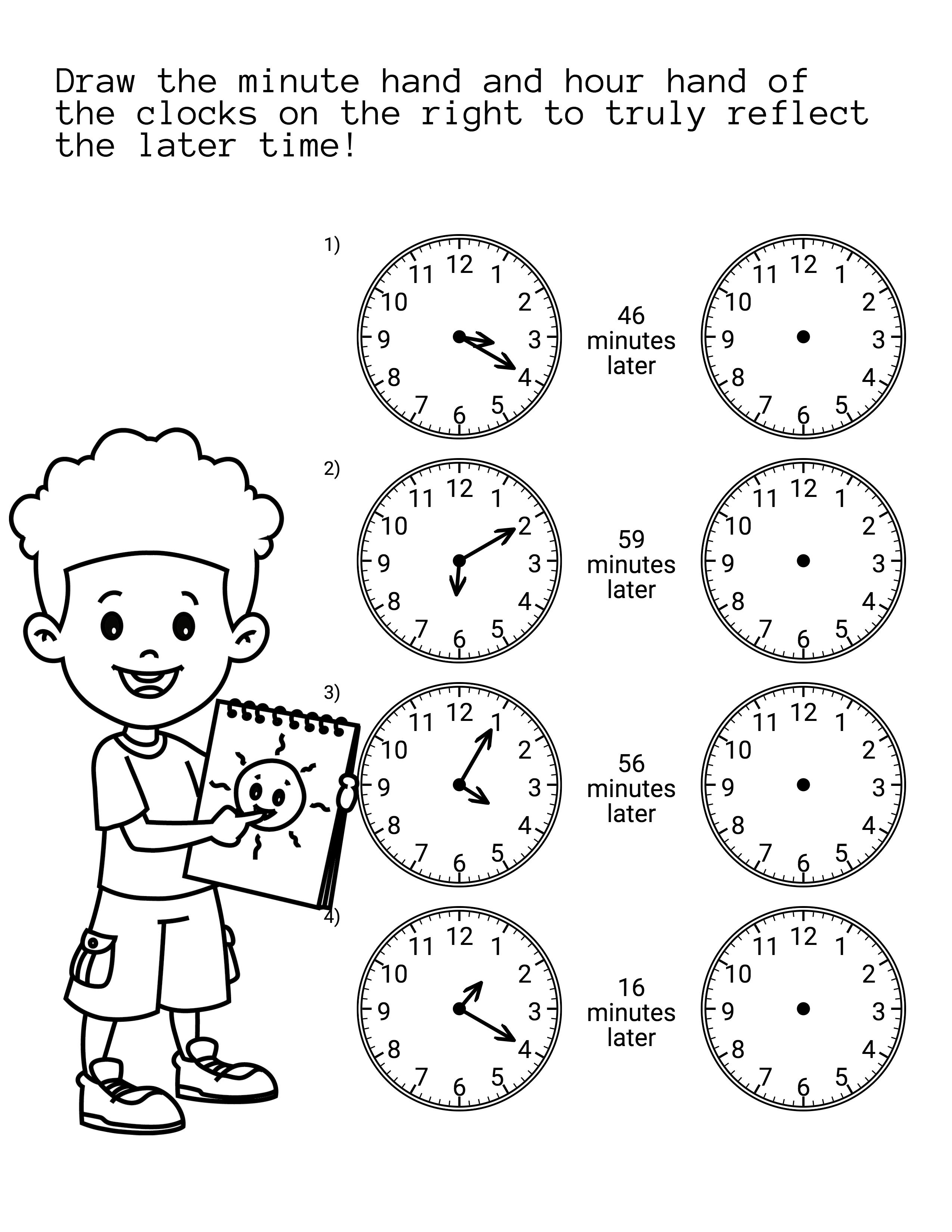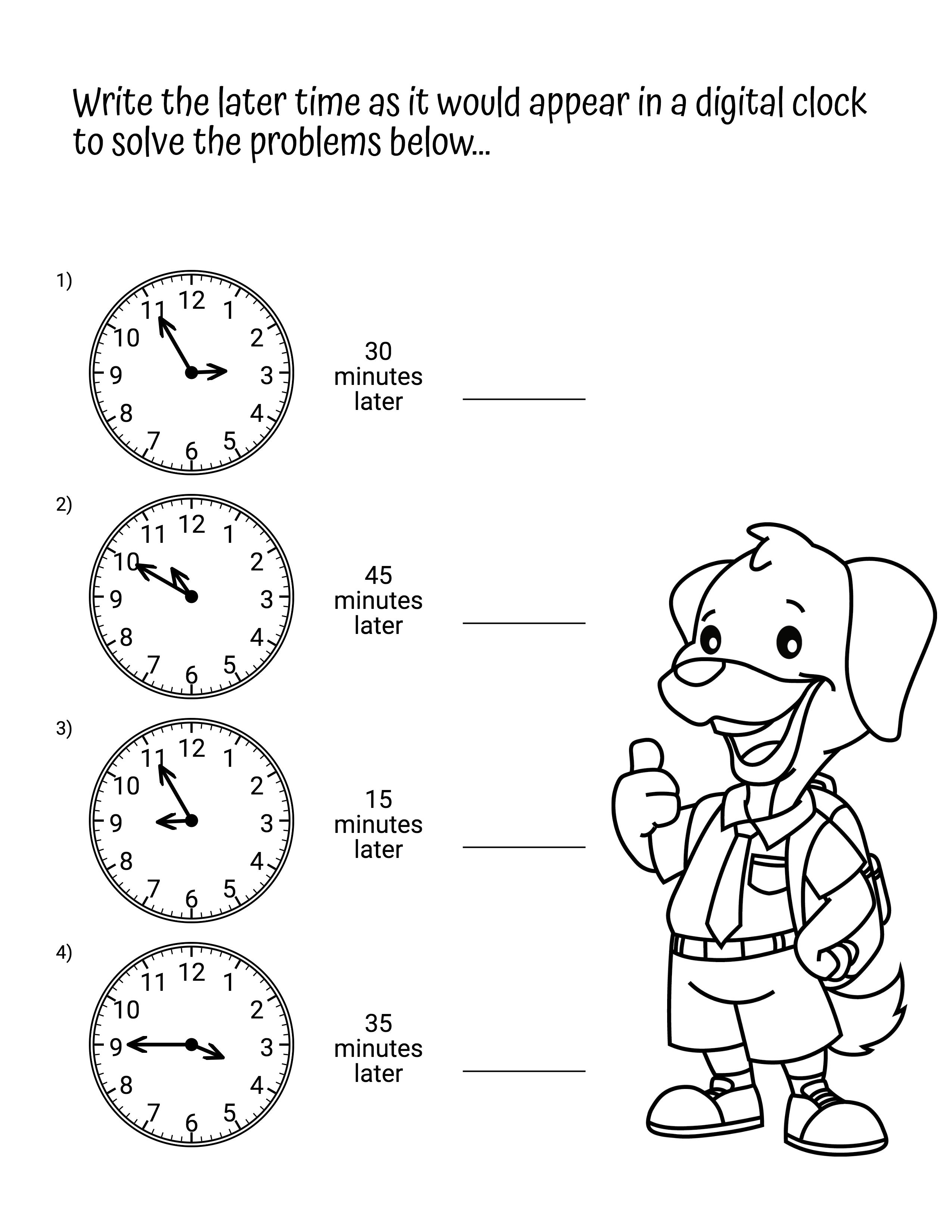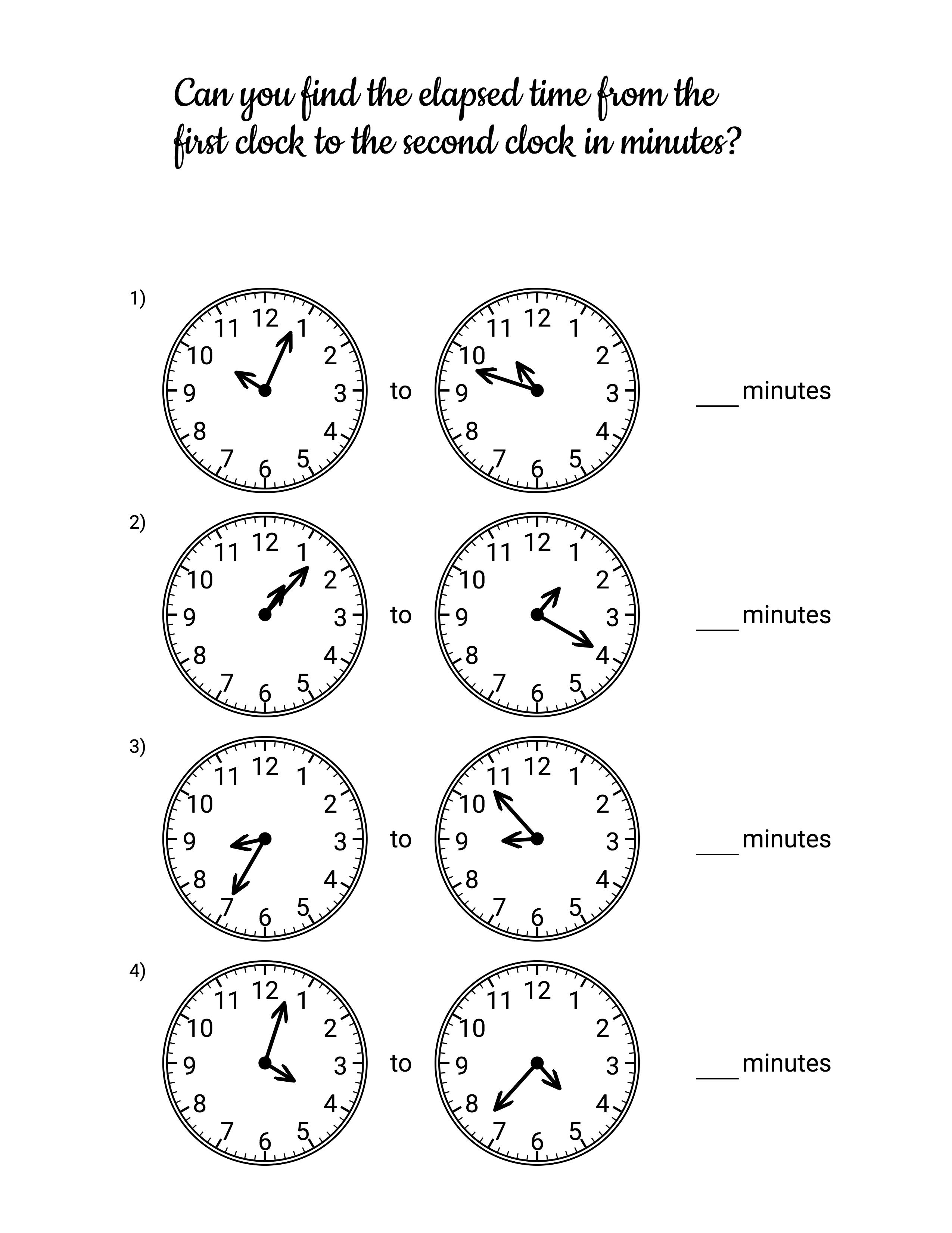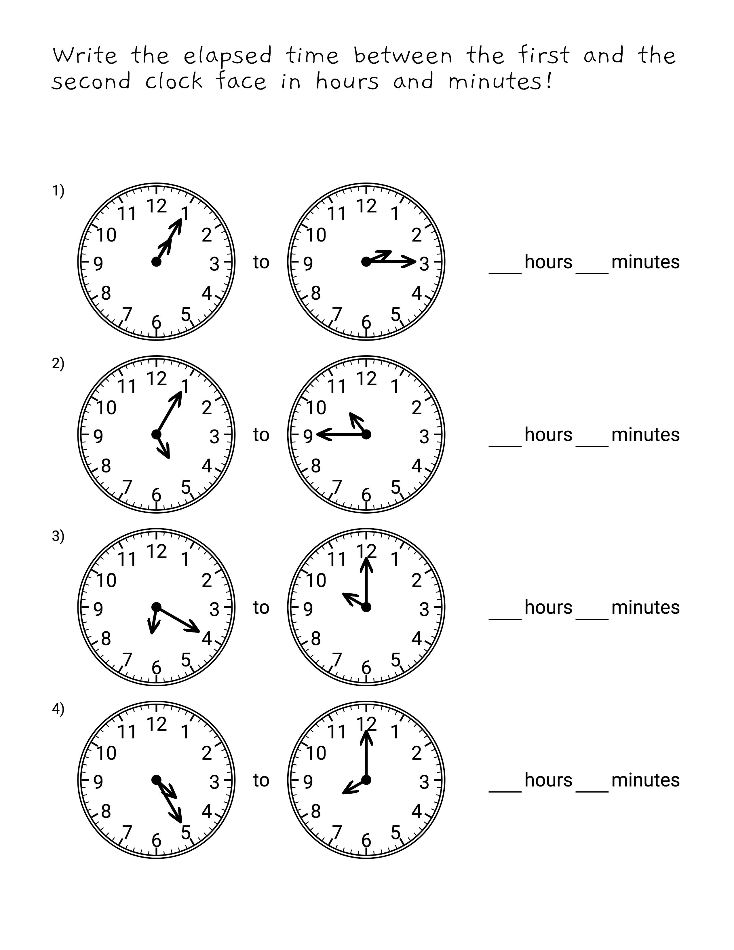 Make worksheets to teach reading clocks, elapsed time, and time conversions. Use analog and digital formats. Suitable for all learning levels.